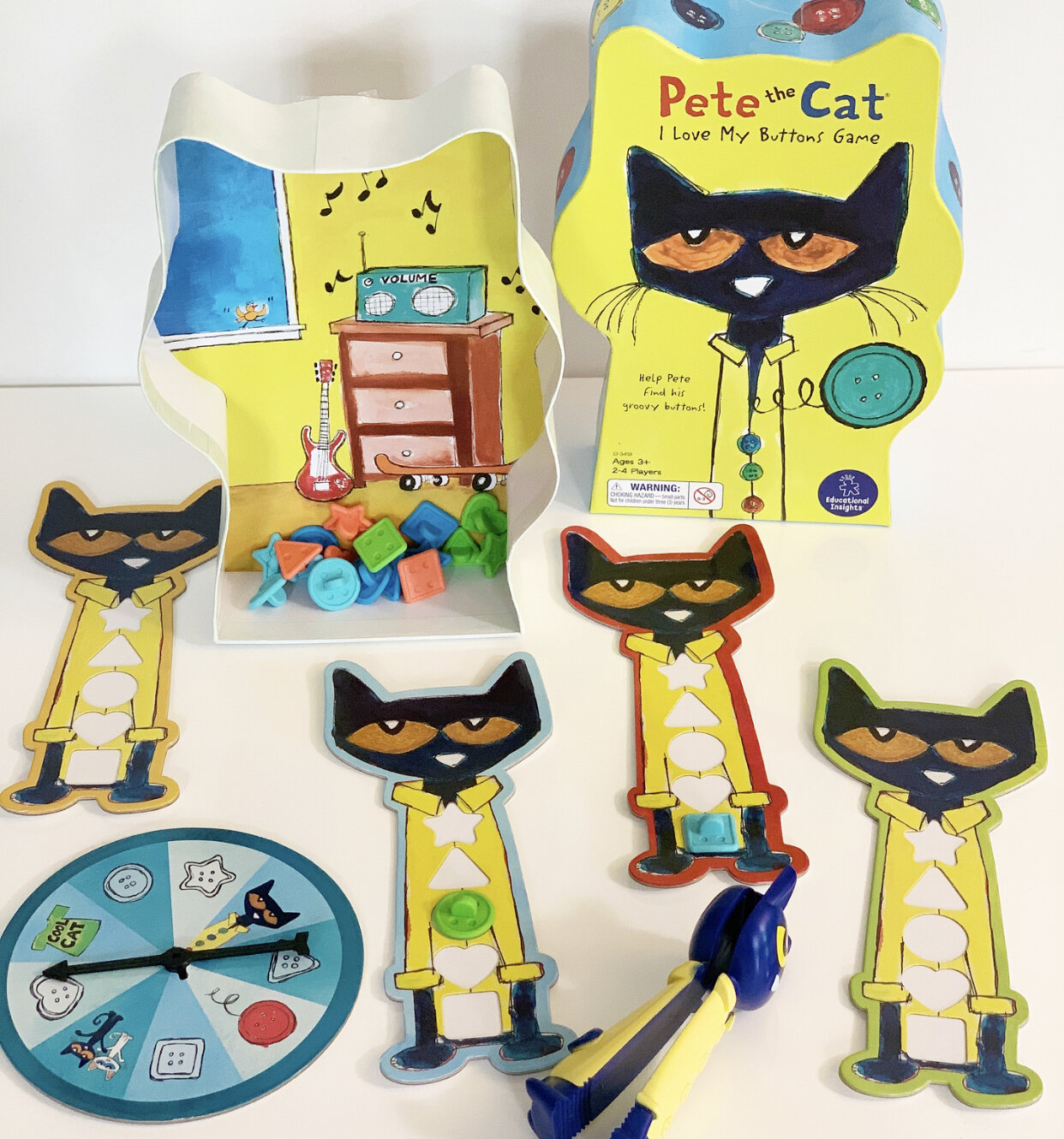 Buy Pete The Cat I Love My Buttons Game Explore preK-8 learning materials and educational toys used by schools teachers parents and children. Pete the Cat I Love My Buttons Game. Players take turns spinning the spinner and using the Pete the Cat squeezer to pick up a matching button and place it in their Pete the Cat shirt game board.
